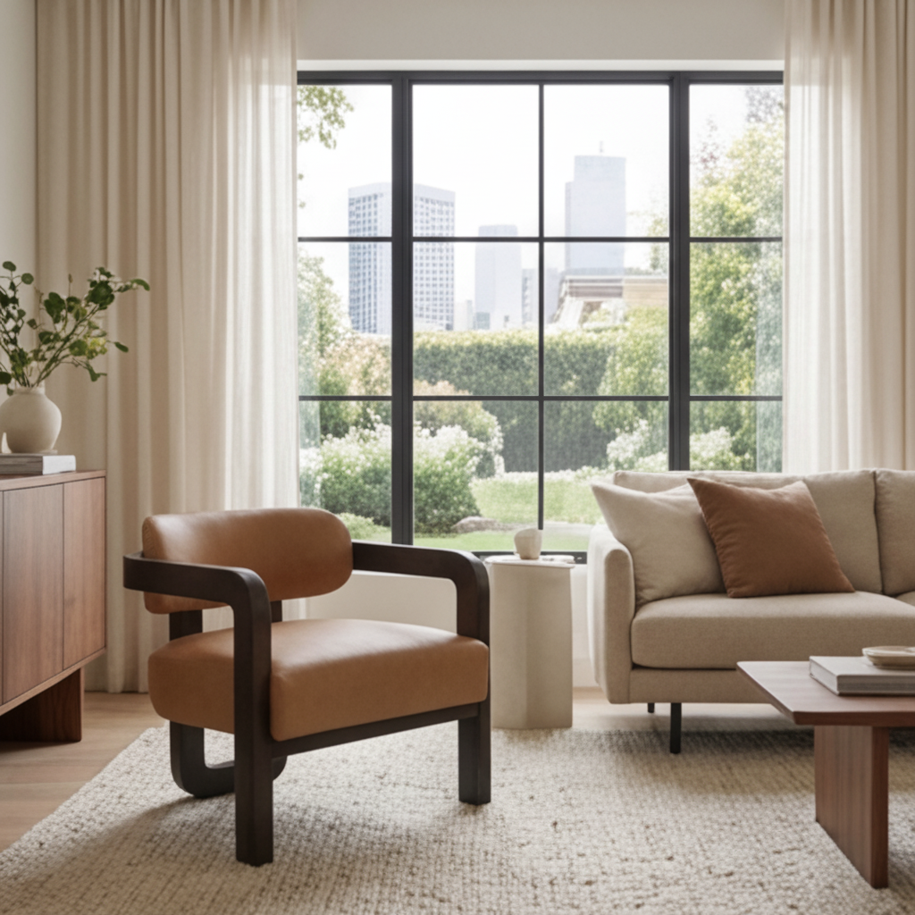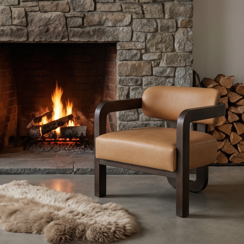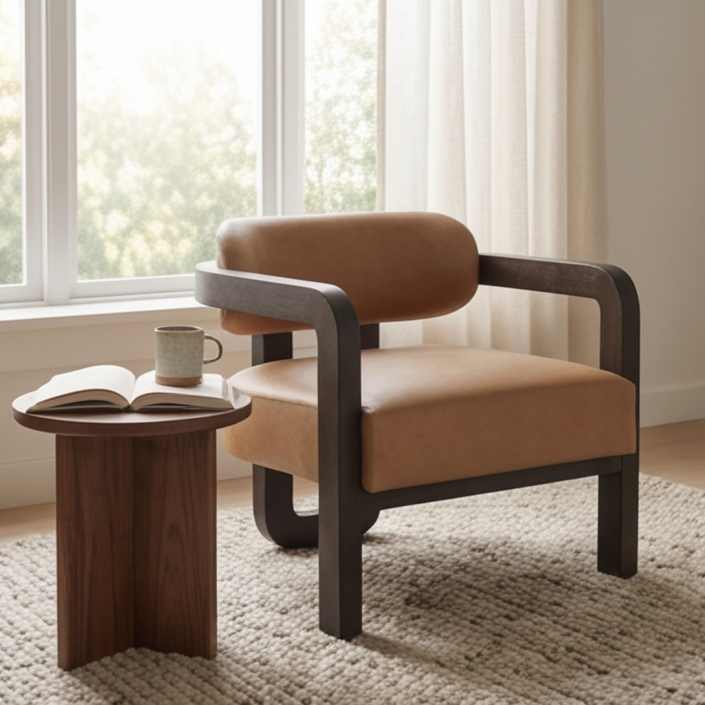 Brown Leather 3-Legged Lounge Chair | Splendido Madrone