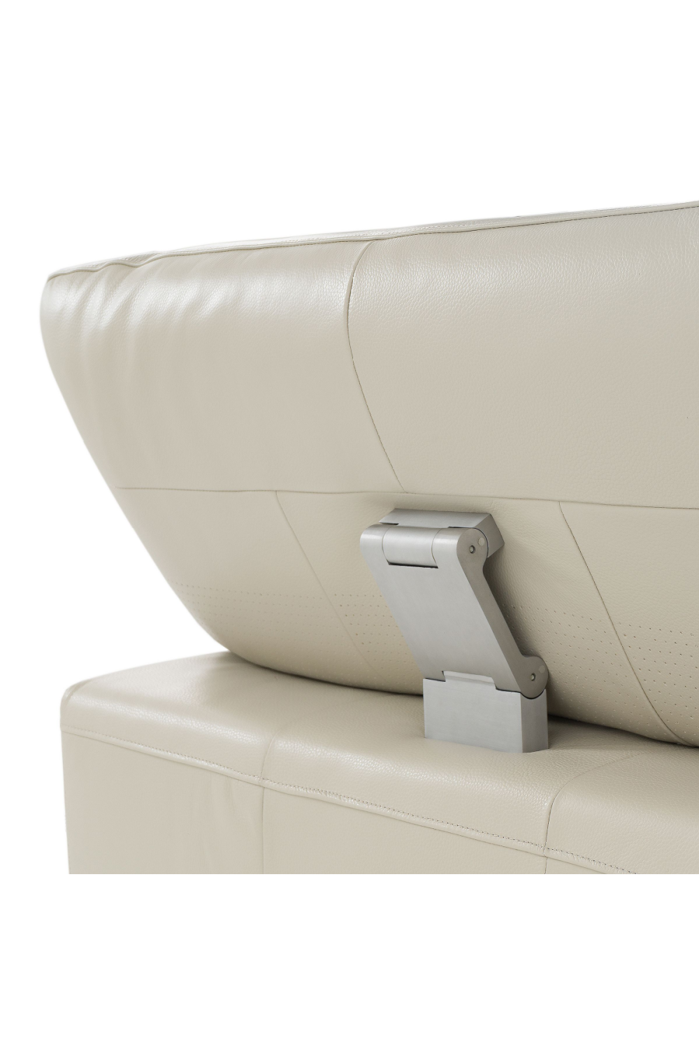 The Modrest Pearson is a striking modern bed that exudes sophistication with its light grey leather upholstery. Its sleek lines and minimalist design create an elegant aesthetic, complemented by plush padding on the headboard and sides for ultimate comfort. The bed's low-profile frame and stylish chrome legs add a touch of contemporary flair, making it a perfect centerpiece for any modern bedroom. Its versatile color and design seamlessly blend with various decor styles, enhancing the overall ambiance of the space.