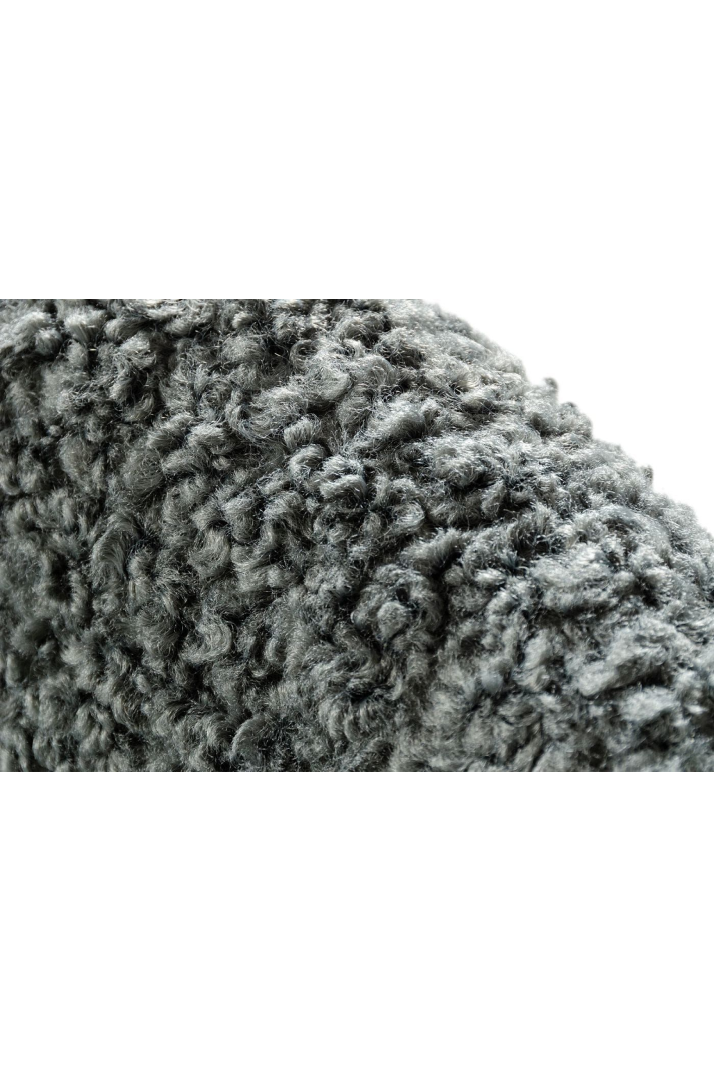 The Ikard Rocking Chair is a mid-century style rocking chair with a modern twist. The upholstery is a lovely grey sheep-style fabric. that creates a cozy aesthetic. Perfect for the colder months for cuddling up with a good book. The rails are textured walnut wood that creates a cabin look. The black powder-coated frame lends itself to an industrial style.