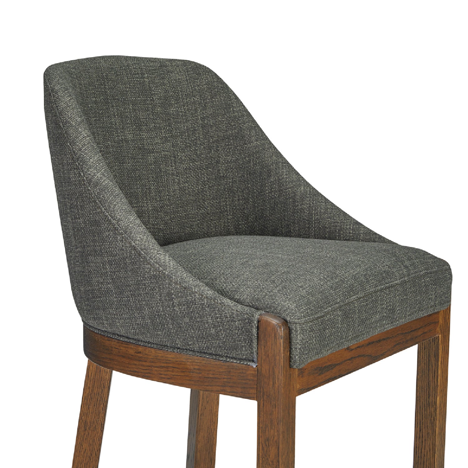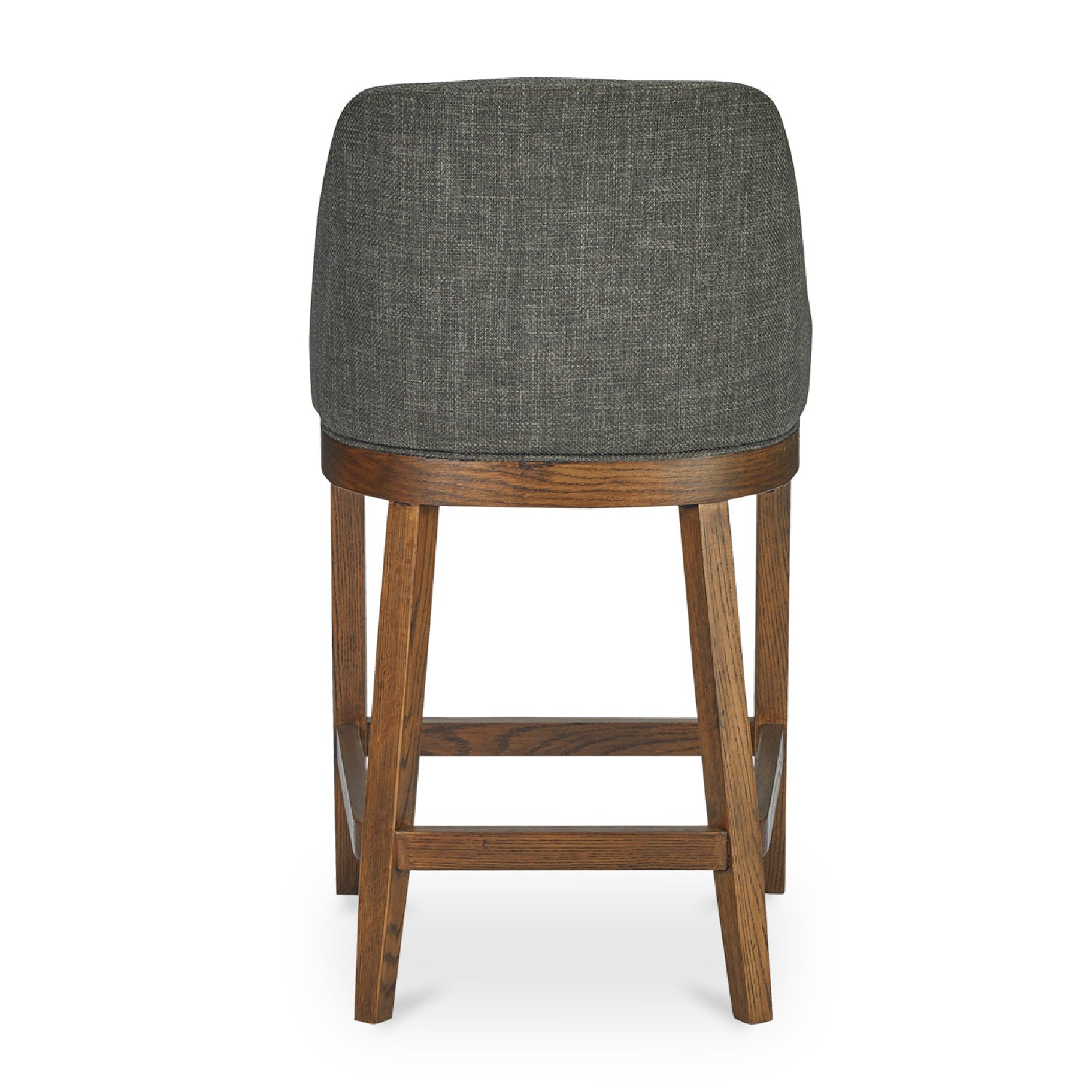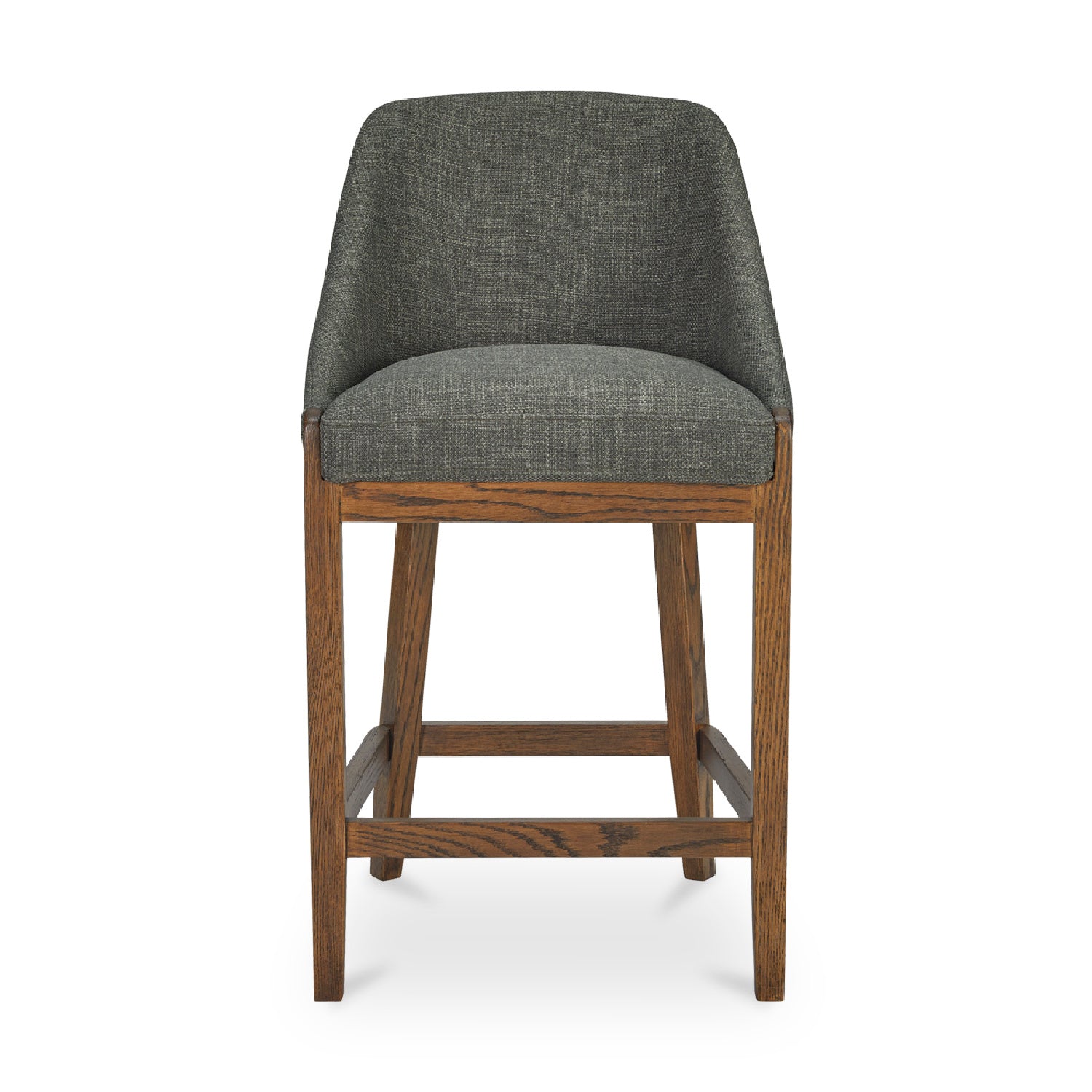 The Edward counter stool is an ideal balance of comfort and sophistication, featuring a traditional silhouette with a generously padded seat and curved backrest. Crafted from expressive solid oak in a dark espresso finish for a rustic touch and upholstered in easy-to-clean, stain-resistant performance fabric, this versatile piece seamlessly combines an enduring style with everyday livability.