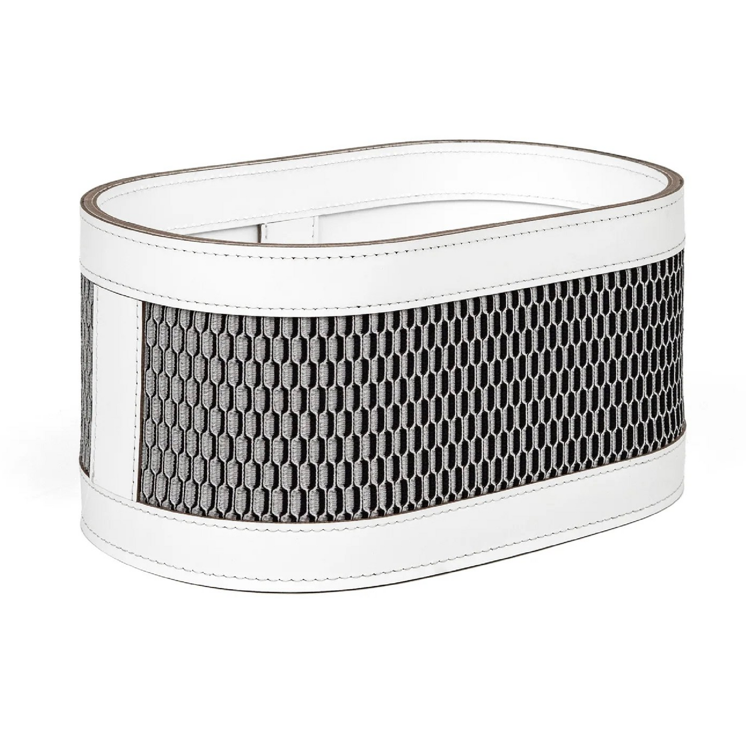 Elevate your bathroom organization with the Leather & Cotton Washcloth Holder from the Nadia collection. Crafted from durable, waterproof leather combined with soft cotton canvas, this holder is designed for both style and outdoor resilience. Ideal for storing washcloths, sunglasses, or sunscreen, it offers versatile functionality. Available in two sizes, it pairs seamlessly with the matching laundry basket to create a refined and cohesive look in any bathroom space.