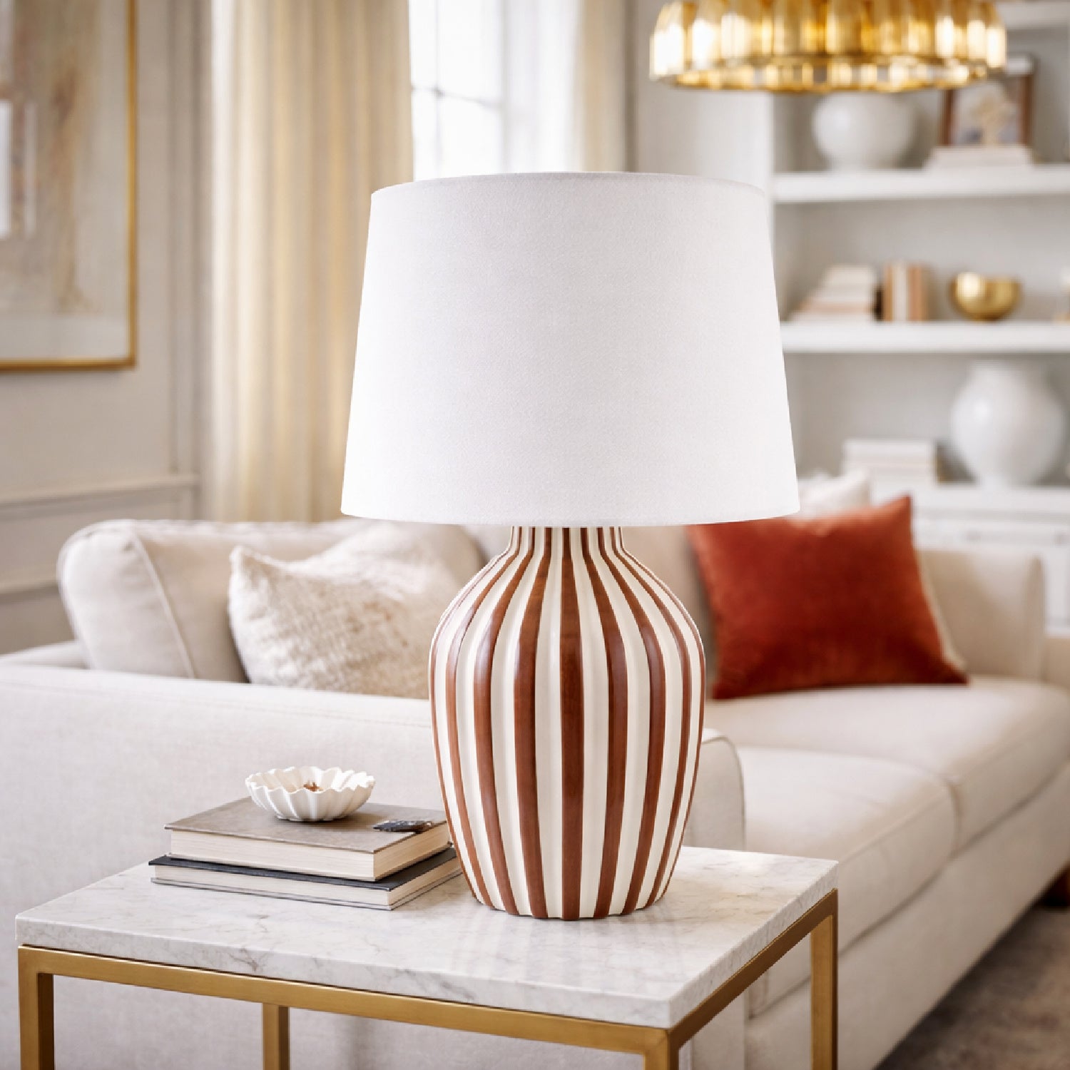 Lined Ceramic Accent Table Lamp | Kuda Home Stratos