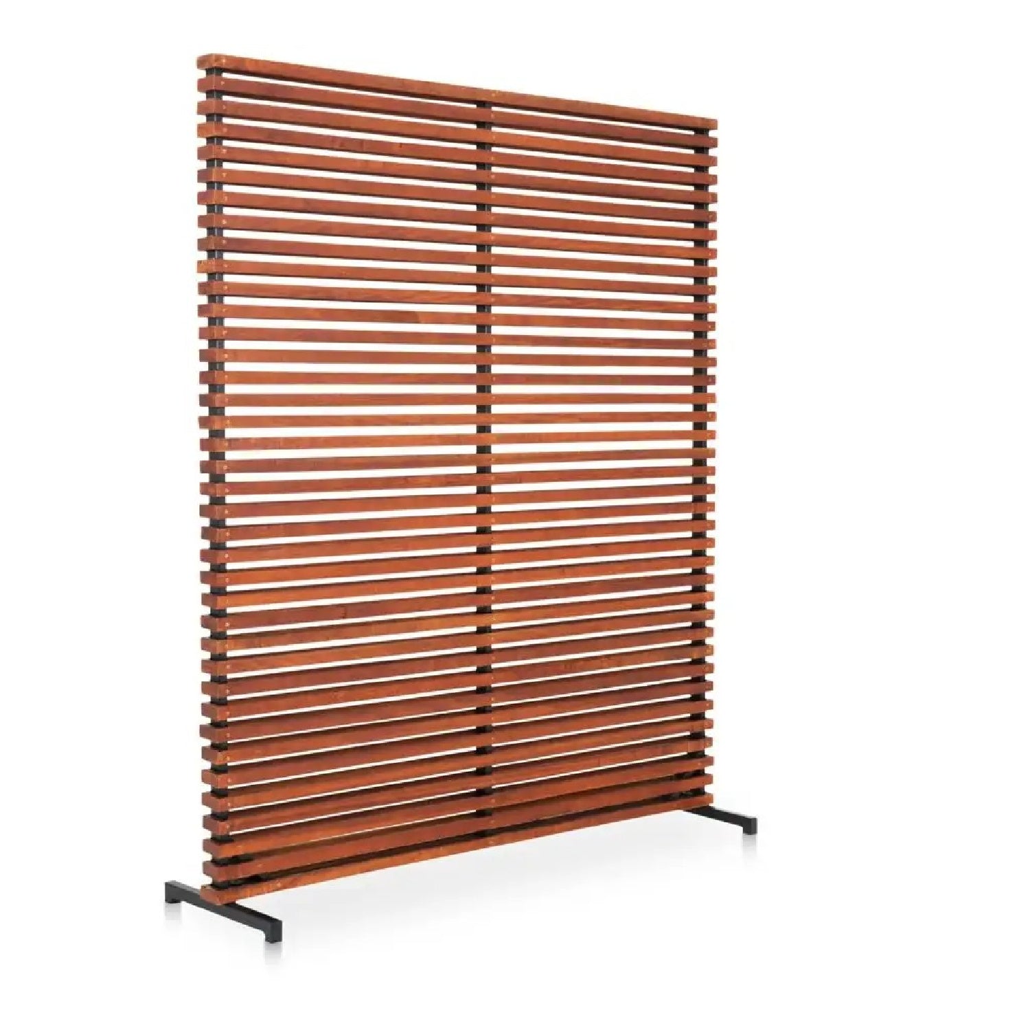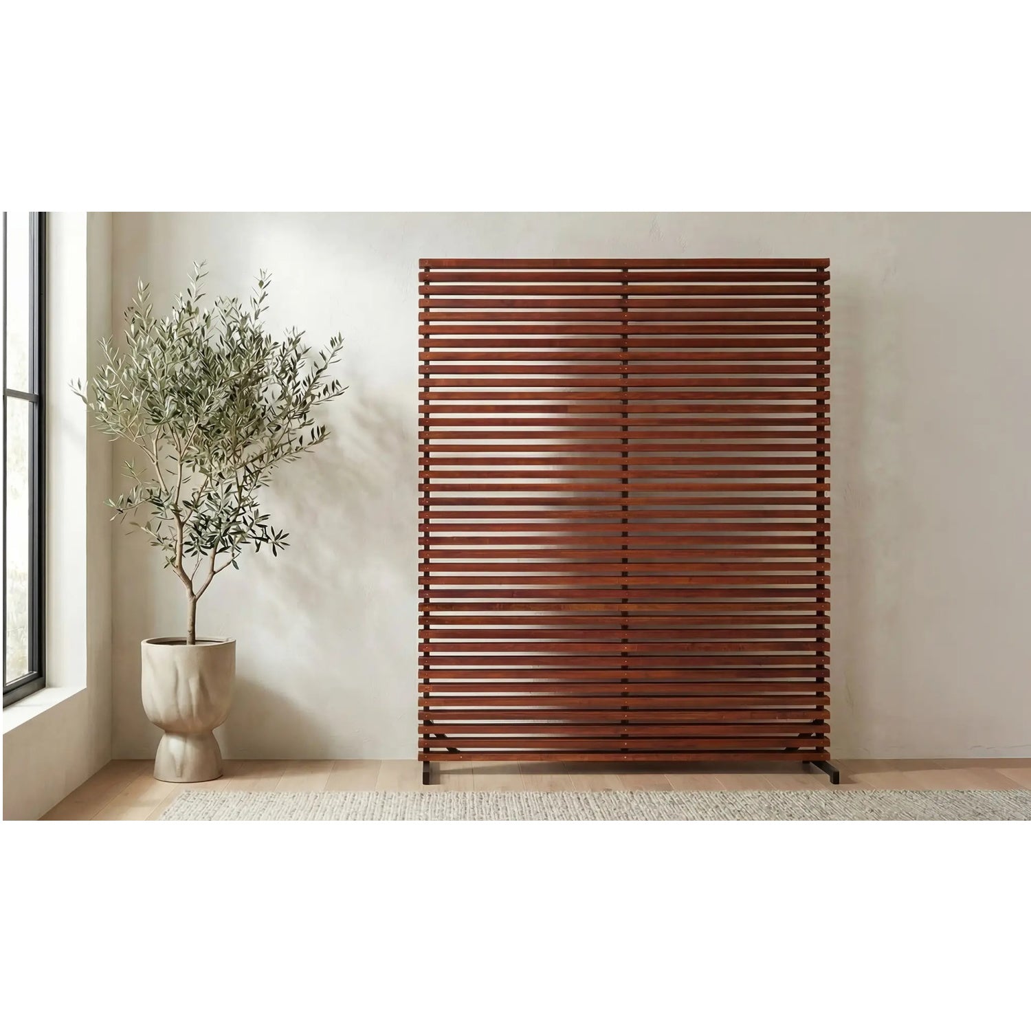 This large screen is made with a sturdy, aluminum frame and natural, hardwood slats. Ideal for privacy or defining different areas in a room, it's also sturdy enough to hang pictures and Décor on the screen itself.