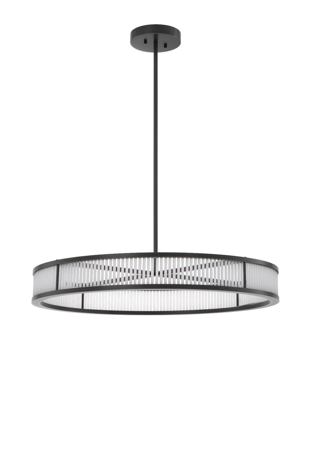 Chandelier Thibaud is a marvelous minimalist ceiling lamp that works really well as a central light in living rooms, dining rooms, and bedrooms. It features a drum-shaped shade with a bronze highlight finish that is adorned with rods of frosted glass.