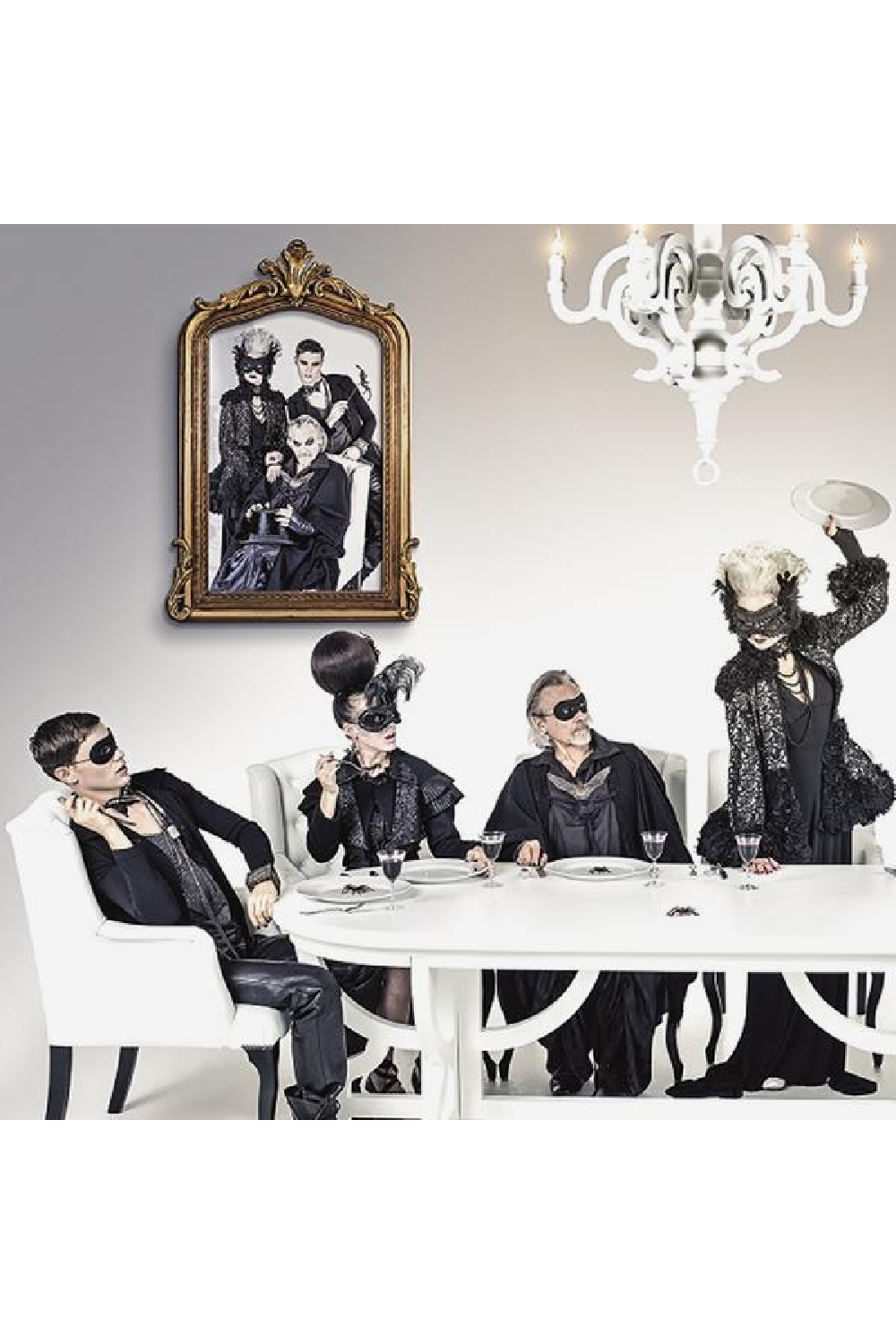 A darkly glamorous take on a traditional family setting where masked figures in black represent the key players, poised as if on the edge of conflict against a white background. Curated in collaboration with our partners Cobra Art, this unusual limited edition plexiglass photograph by Andrew Martin is available in 3 sizes.