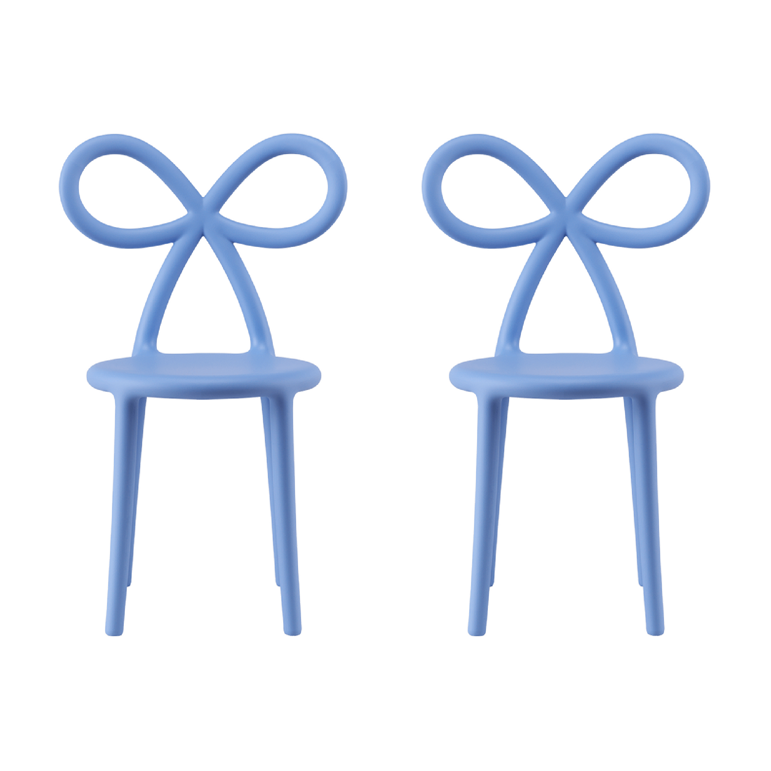 The feminine chair par excellence is now proposed in the mini version, suitable for children. The delicate and essential shapes remind the Ribbon Chair in its original size: that’s how a small-scale chair with a strong identity was born. As in the adult version, the large bow that acts as a backrest, translated by the designer with a soft, light and essential sign, takes us into an extraordinarily romantic world. Here it's proposed in a set of 2.