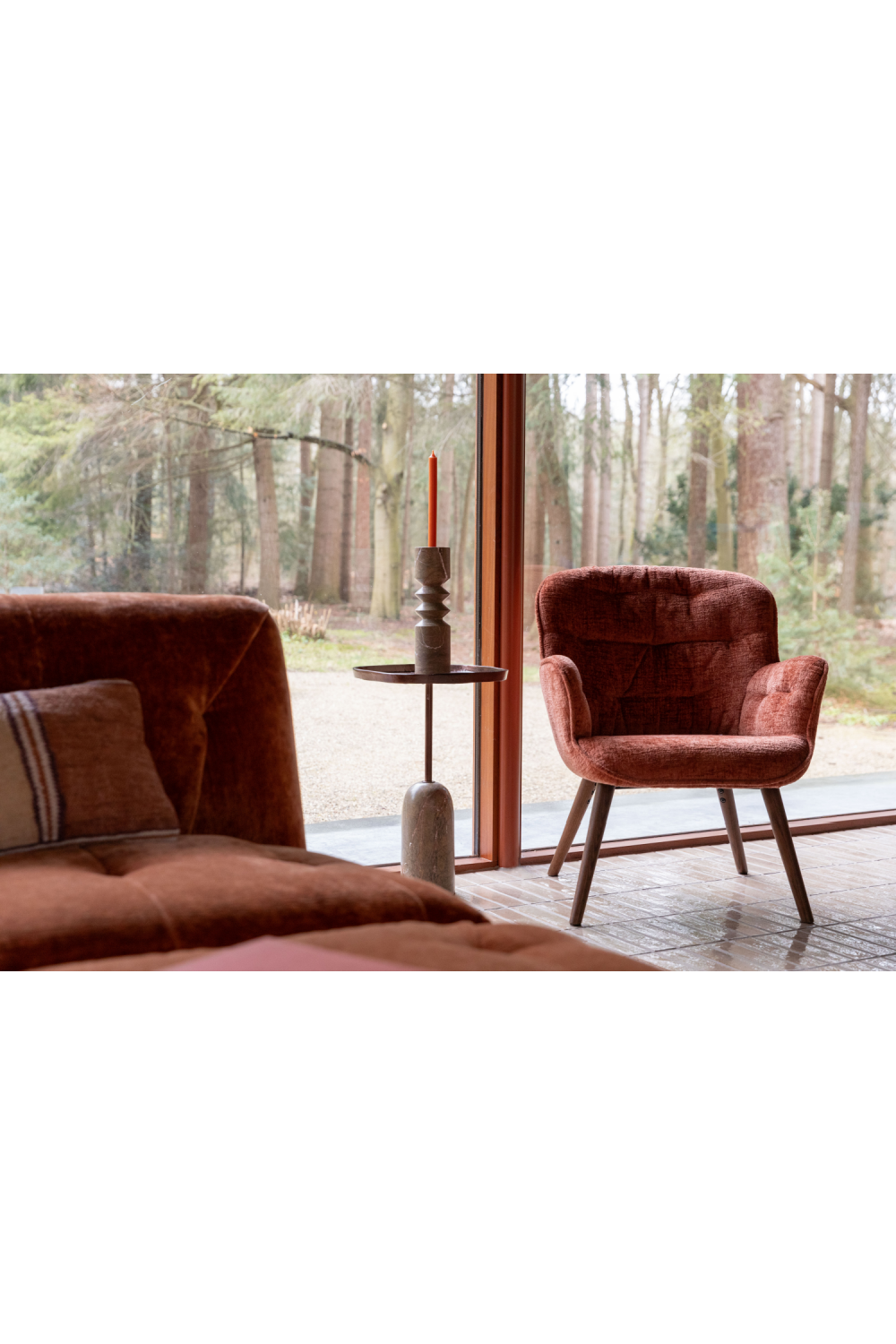 With the right accessories, you create an atmosphere in your home and turn your interior into a home. The Dutchbone Satpura side table, candle holder, and book stand are typical items that make your interior your own. Because they are made of brown marble, they naturally have a warm appearance with sometimes small imperfections, which provide a perfectly imperfect look. This means that the furniture and accessories give a lot of character to the room where you place them. Moreover, the series is also nice to combine, for example in a cozy reading corner with a comfortable armchair and bookcase.