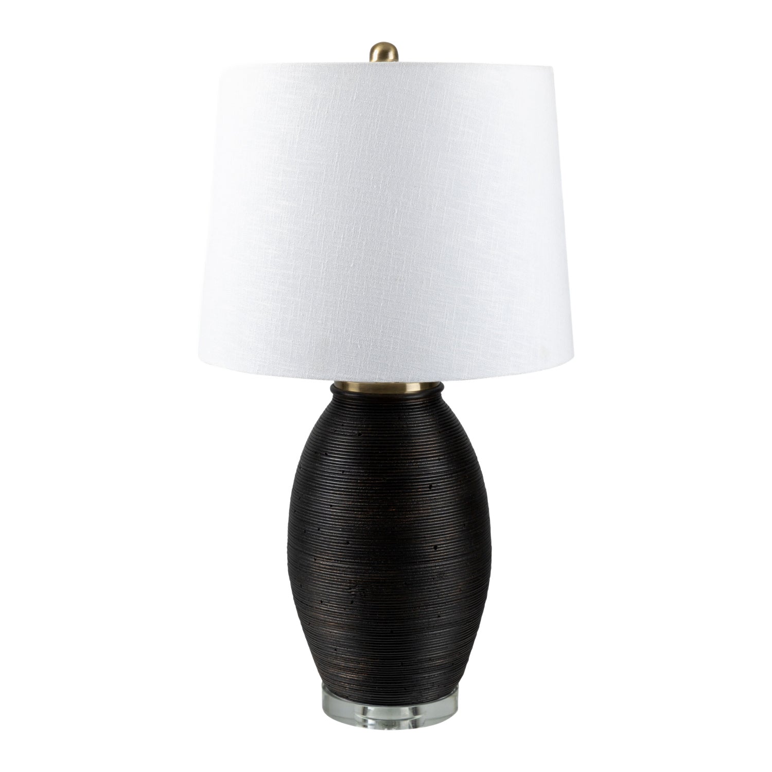 Introducing the Brillo accent table lamp, a dazzling blend of rustic tradition and modern design. Constructed from sturdy cement for the body, this lamp is both robust and stylish, making it a perfect addition to any living space. The exterior shade is made of delicate linen while the inside boasts a polyester lining, reflecting a warm and inviting light that will transform your room into an ambiance of coziness. Standing at 27 inches tall, this piece offers an impressive presence without overwhelming your decor. Topped off with a sleek metal finial for an added touch of elegance. Maintaining its charm is as simple as wiping clean with a dry cloth. Light up your home with the timeless appeal of the Brillo accent table lamp!
