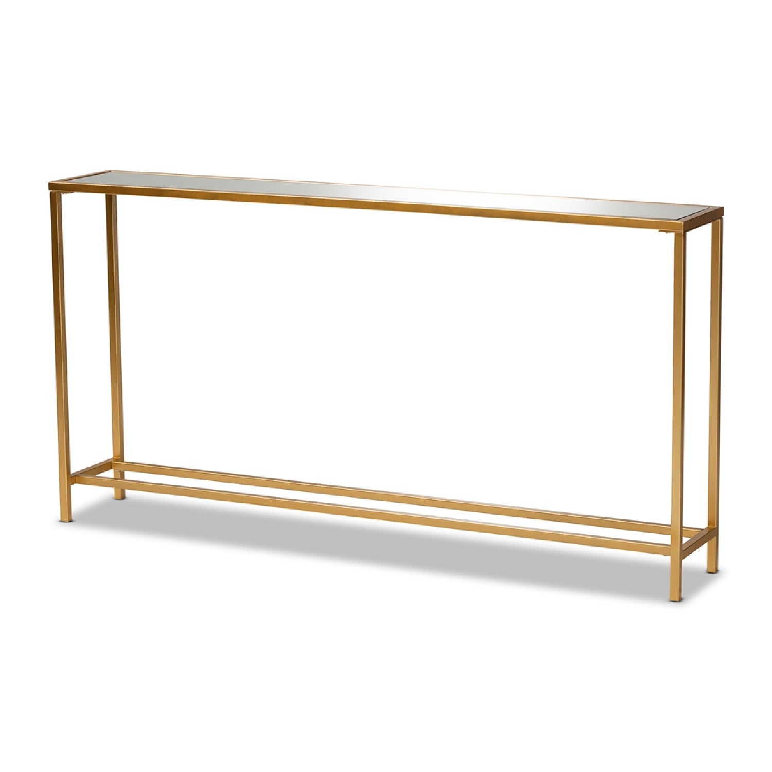 Gold Framed Glass Console Table | Bali Loom Alessa is backordered and will ship as soon as it is back in stock.