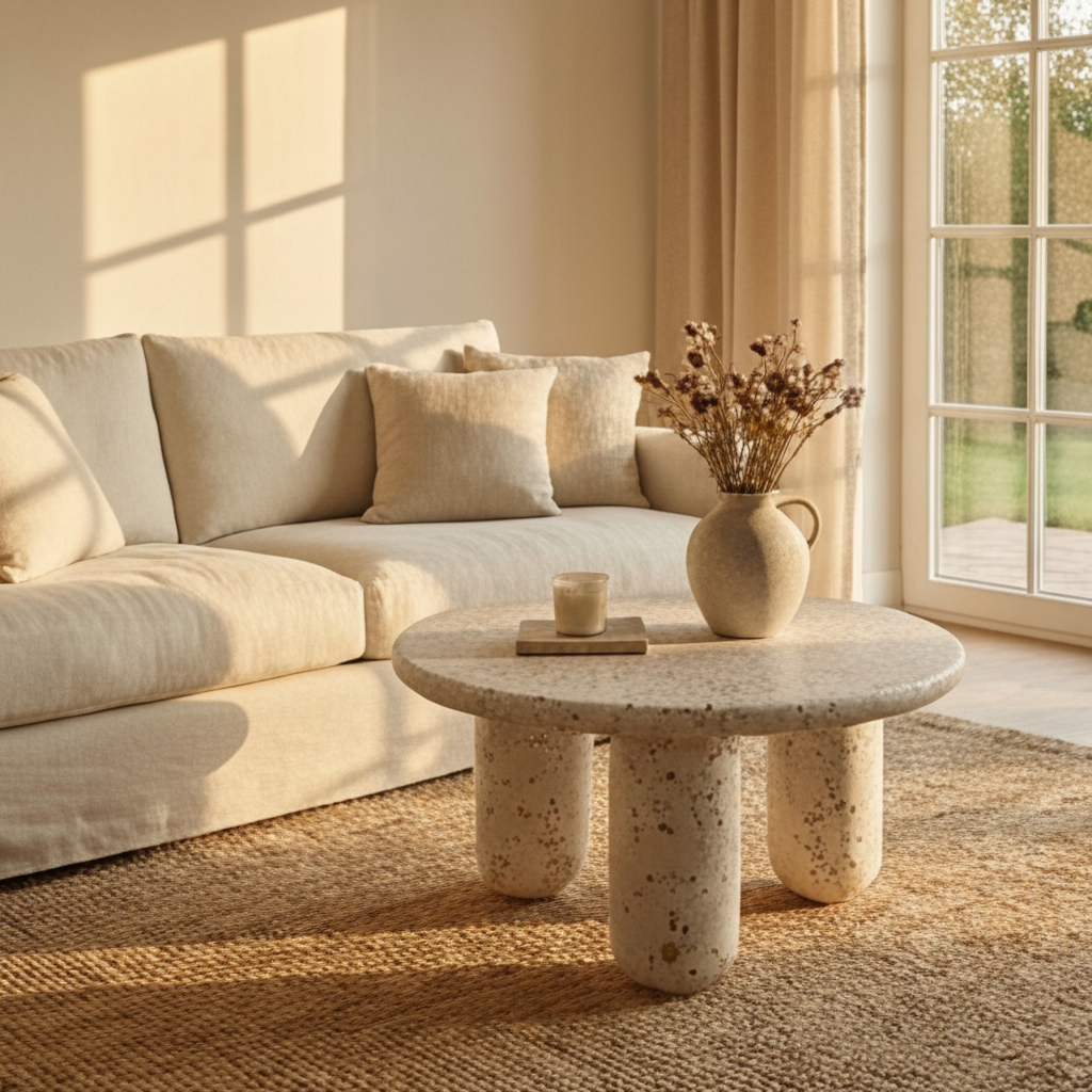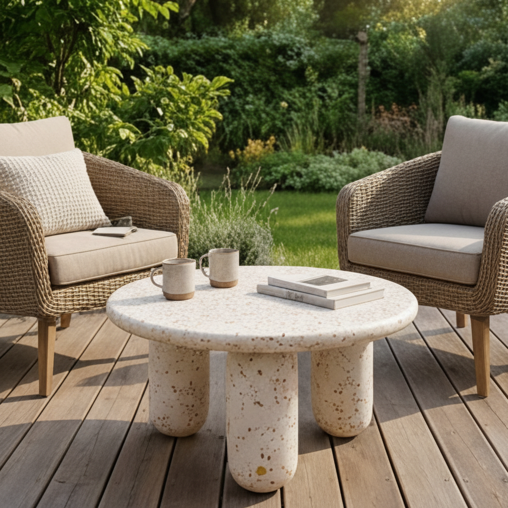 Is each table unique? Yes—terrazzo features natural variation in fleck pattern and tone, making every piece one of a kind.