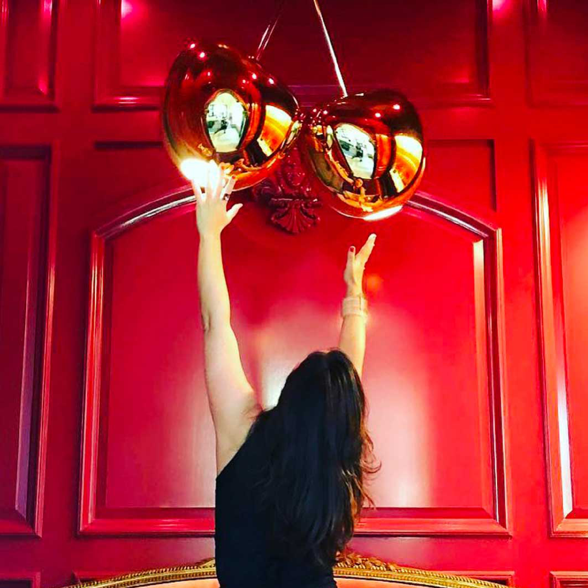 Indulge in luxury with our Modern Sculptural Chandelier in Qeeboo Cherry. Designed by Nina Zupanc, this chandelier features an LED light bulb and irresistible curves that captivate the eye. Add a touch of elegance and sophistication to any space with this unique and alluring piece.