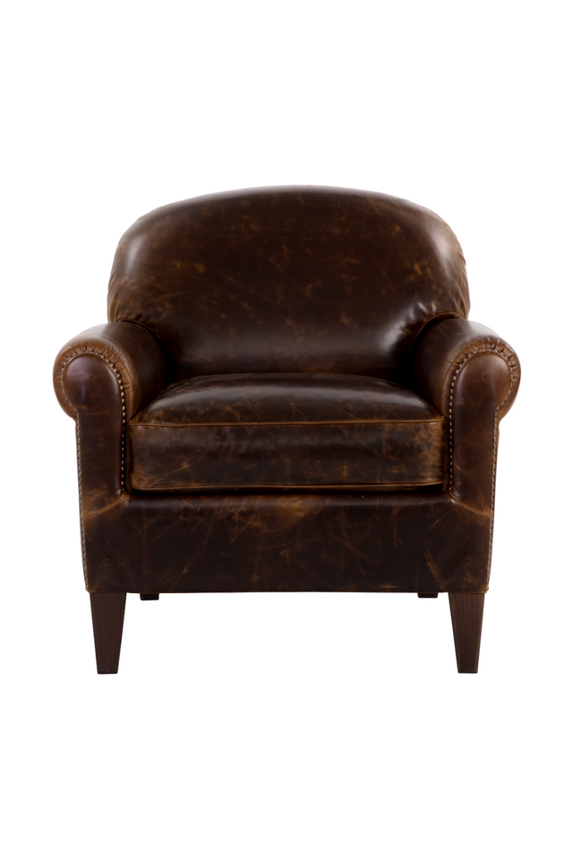 Immerse yourself in high quality comfort with this luxurious, Italian-made lounge chair. Upholstered in our chocolate 100% Italian bovine leather for lasting quality, and beautifully embellished with nailhead detailing. This fine, pure aniline leather is barrel-dyed, treated with oil and finished with wax to showcase the beautiful, natural elements of the hide. Finished with dark brown solid beech wood legs.