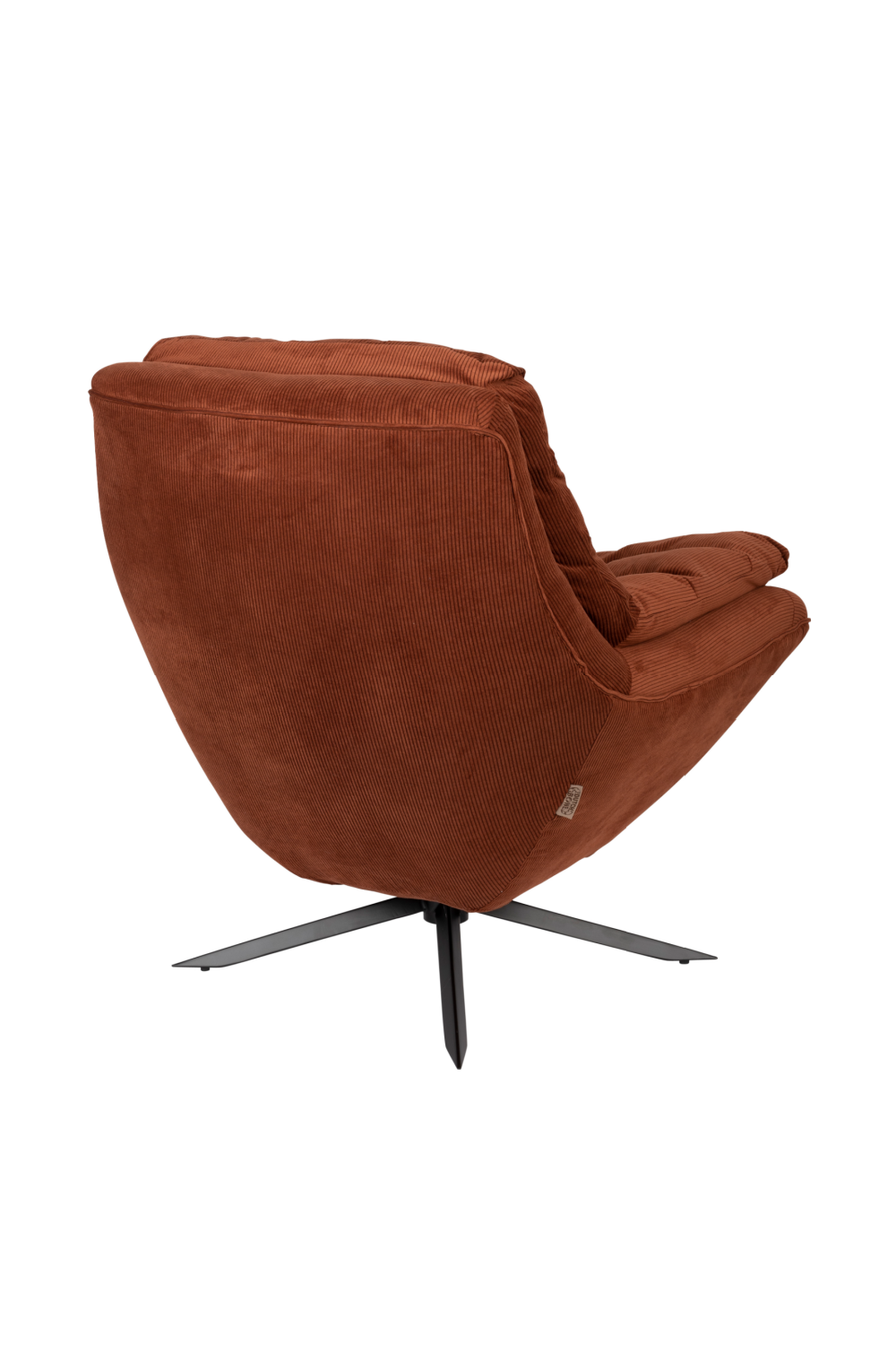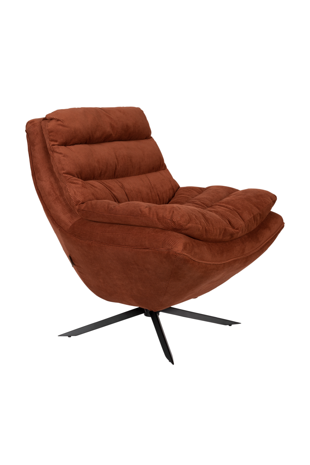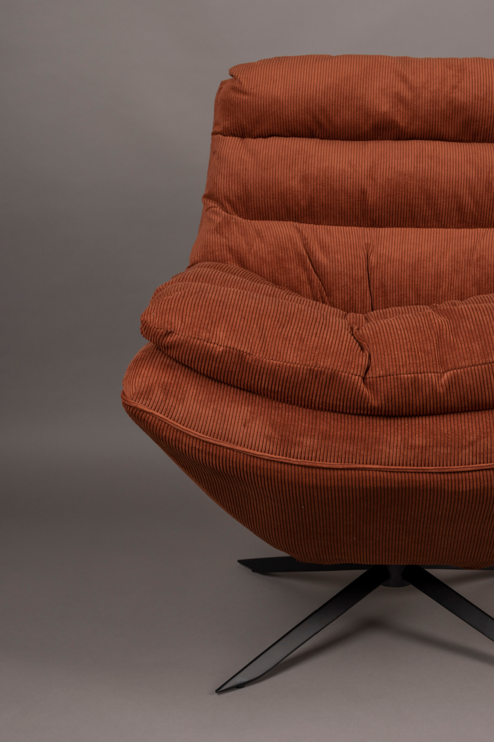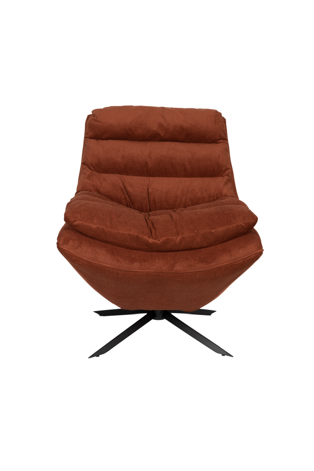 Lounge chair Vince doesn’t hide its comfort. Even from afar, it is clear that Vince has a level of comfort that was last seen in the seventies! Thick cushioning and soft fabric. A chair to sink into and keep for yourself for hours to come. Lounge chair Vince is equipped with a swivel base with a return mechanism. For even more comfort from the olden days!
