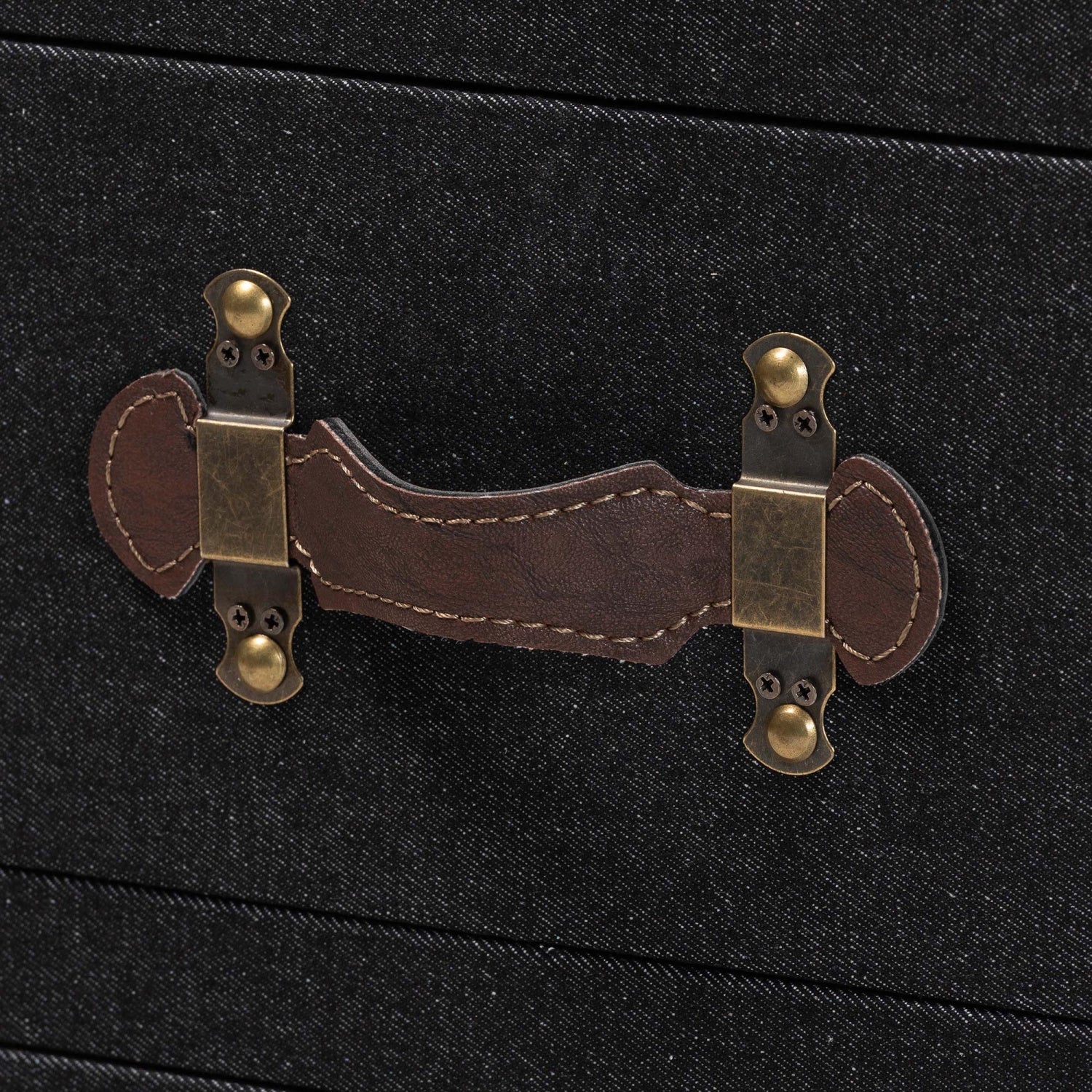 Vintage charm springs forth in the form of the stunning Mallison end table. This traditional piece consists of a sturdy wood frame wrapped in smooth canvas. Three drawers offer convenient storage for household essentials while reserving the tabletop for daily use. The Mallison will arrive fully assembled and is affixed with metal bands studded with nail heads for an extra dose of industrial charm. Leather handles complete the look, making the Mallison end table an eccentric addition to any setting.