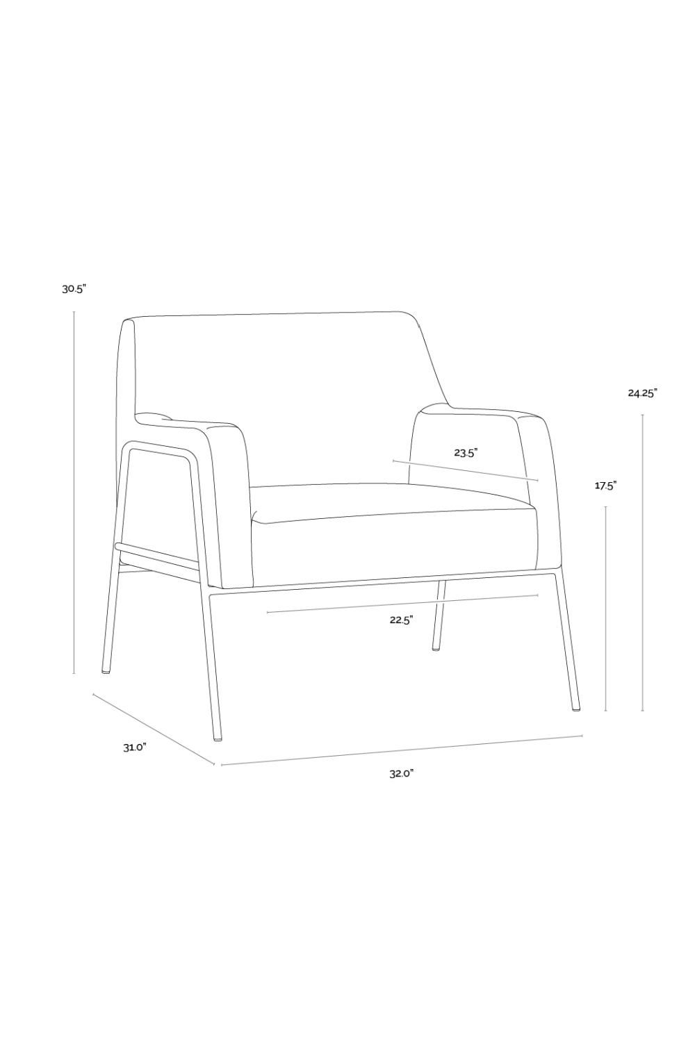 A stylish and comfortable armchair. Designed with a modern frame featuring exposed antique brass legs. Available in vintage caramel leather, dove cream fabric or polo club kohl grey performance fabric. Handle with Care: This design has been crafted with top grain leather. Leather is a natural material; as such markings, wrinkles, grooves and light scratches are acceptable and appreciated characteristics. No two pieces are alike. Visit our Product Care page for more information on how to ensure the lasting beauty of this piece.