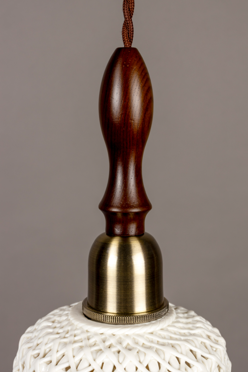 Our designers are collectors of beautiful pieces of furniture from all around the world. They bumped into this adorable pendant lamp. They immediately called the treasure Poppy’, because that is what this lamp makes us feel like. The lamp shade is made of beige ceramic, with a pattern that looks like a lace fabric. The twisted textile cable is dark brown and it has American ash wooden details. Poppy is available in two different variants: tall and wide. Hang your favorite Poppy pendant lamp in a place that you think is cute: it’s the perfect lamp for the nursery, a corner with your favorite lounge chair, or above your dining table. You can also combine the lamps for an extra cute effect.