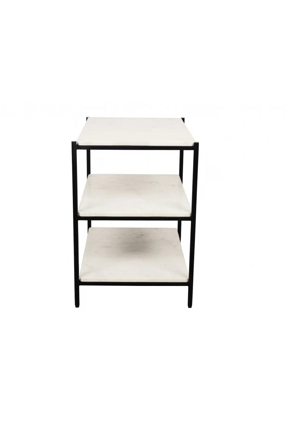 The Trine nightstand builds a story around elemental bursts of marble and iron. Three tiers of white marble are joined together by a sturdy semi-gloss iron frame to create something that is as functional as it is elegant. This versatile nightstand keeps things neat and organized in the bedroom but would look great in any room setting.