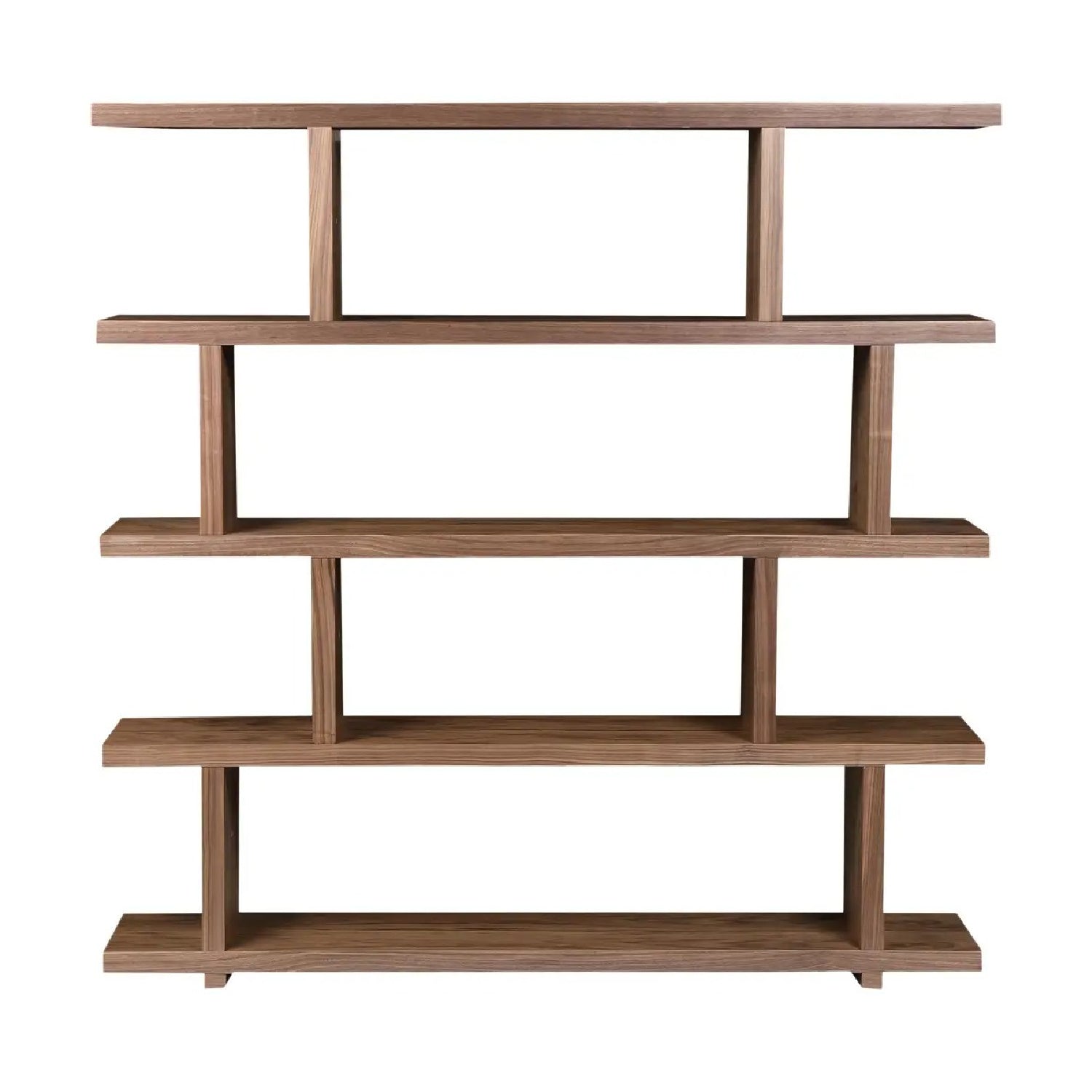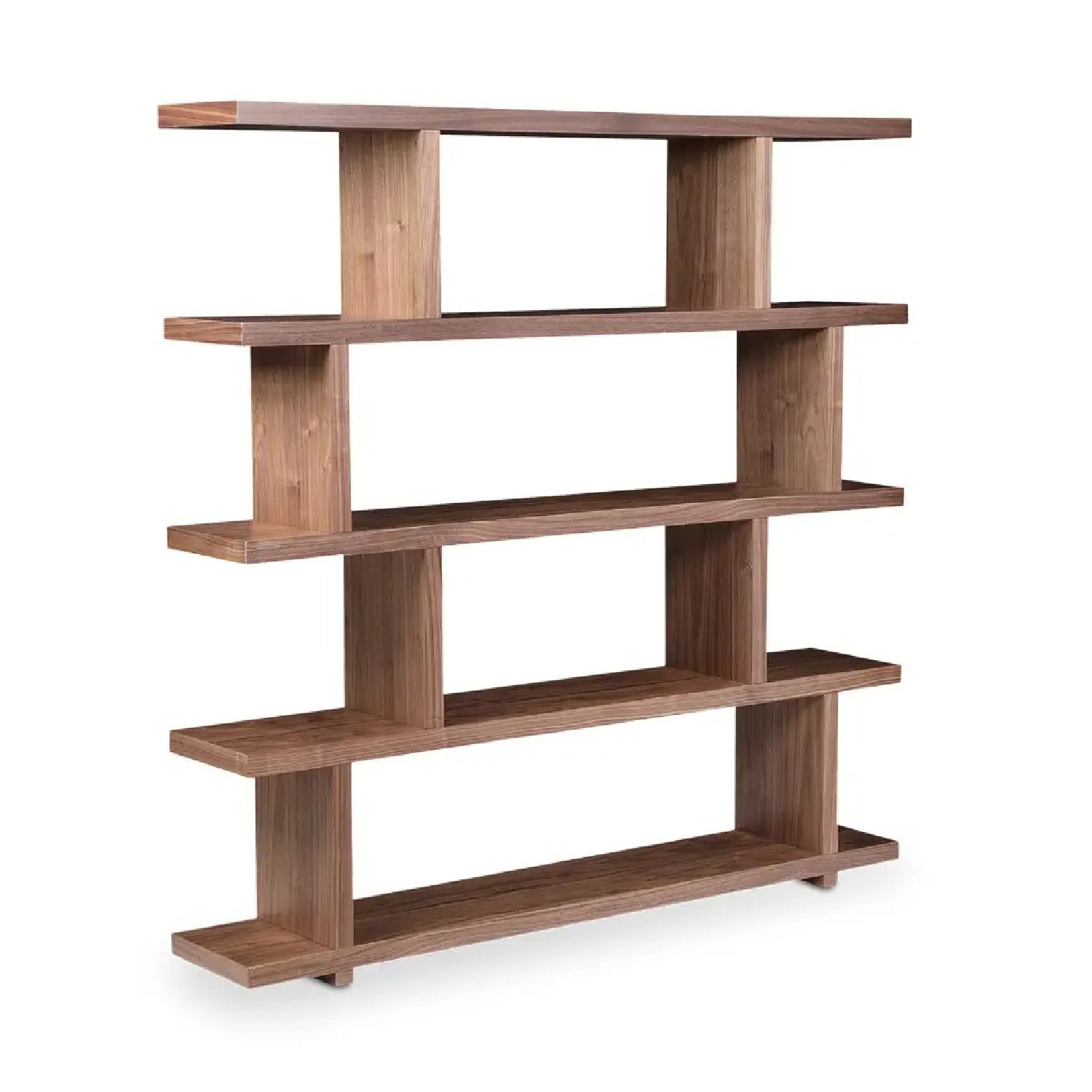 Offering versatility in Mid-Century Modern design, the Miri Shelf is an exquisite shelf that doubles as a perfect space divider for open-concept spaces. Made of wood, it radiates an inviting warmth and elegant ingenuity for those needing a larger storage solution with two units able to slide together for a seamless five-tiered display.